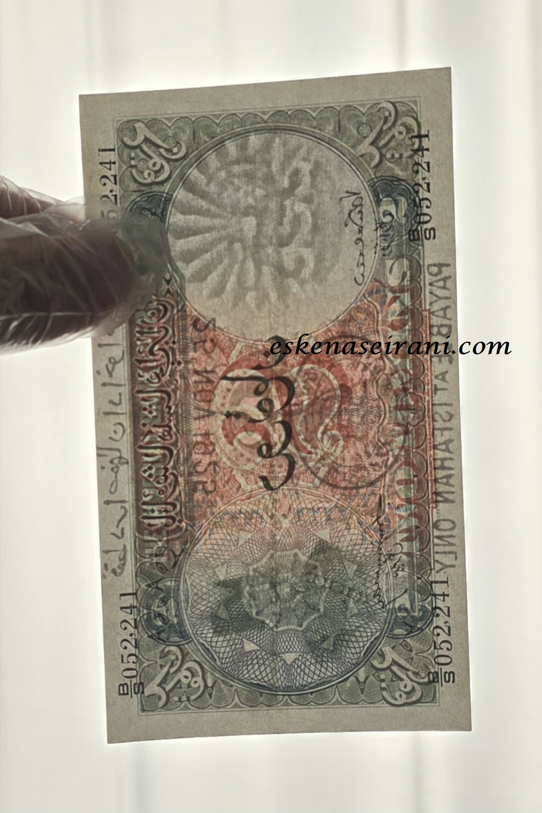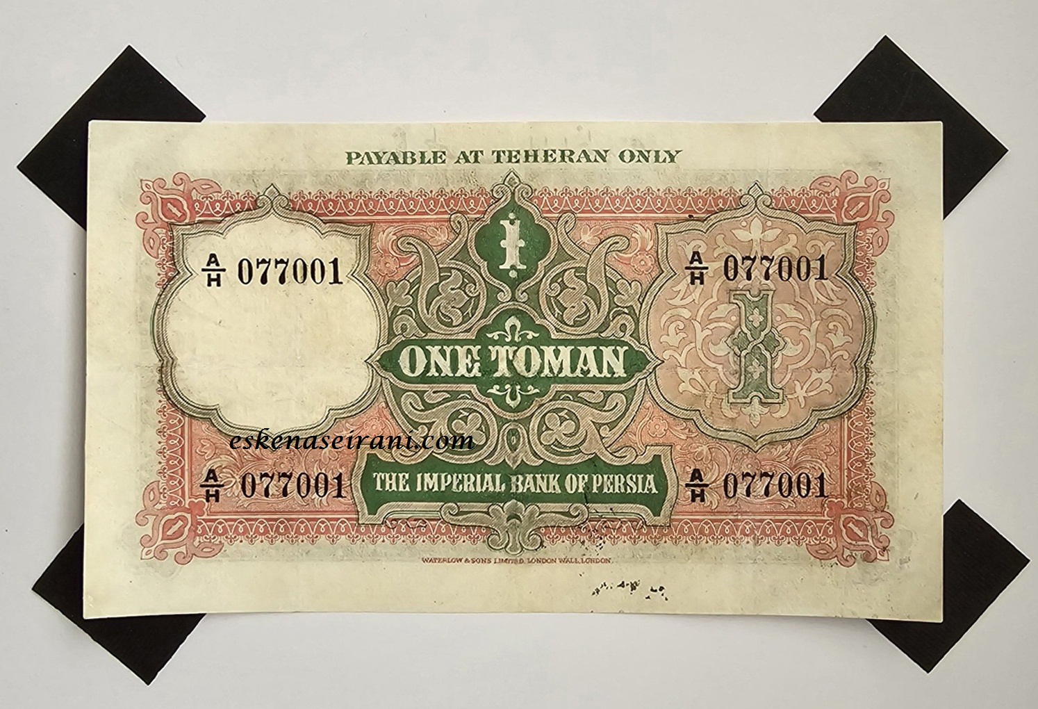 ((تیراژ اسکناس 1 تومانی 1900 طبق اسپسیمن موجود 200 هزار عدد میباشد))