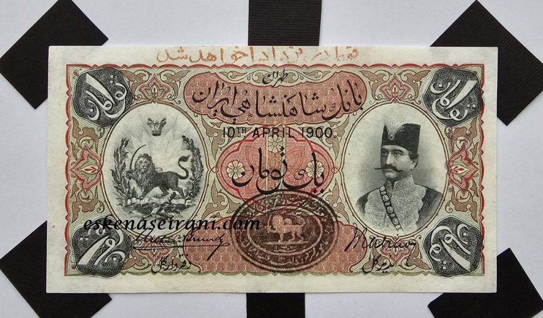 اسکناس فوق از نایاب های تاریخ قاجار میباشد با کیفیت فوق العاده